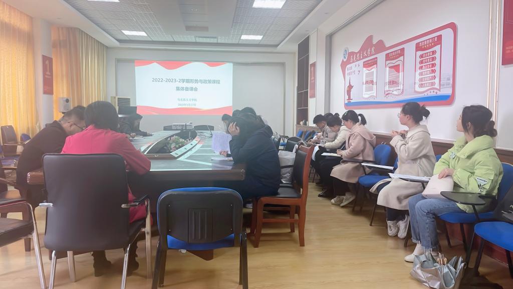 3月21日bevictor伟德在北A410会议室召开2022-2023学年第二学期“形势与政策”集体备课会。承担了本学期本门课程的思政课教师参加了此次集体备课。会上对本学期的教学工作作了具体规划。教师之间就“形势与政策”课程内容、课程体系、课程分工、如何将党的二十大精神融入形势与政策课程以及员工与教师之间如何在课堂中良好互动等展开讨论。参会教师对于如何把“时”与“势”讲深、讲透、讲活,引导员工学深悟透党的最新理论和政策等问题都发表了自己的见解。