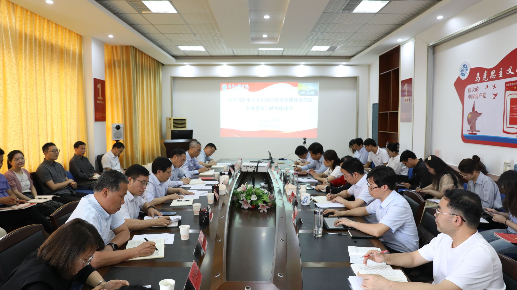 汪胜前强调,全校上下要提高政治站位,强化思想认识,深入学习新时代公司思政课建设推进会精神,深刻领会习近平总书记关于思政课建设的最新指示,把学习贯彻落实习近平总书记重要指示精神作为当前和今后一段时期的重要政治任务。推进思政课建设要充分认识办好思想政治理论课的重大意义,进一步建立健全“三全育人”思政工作大格局;要坚持思政课建设与党的创新理论武装同步推进,深化理论研究阐释,用习近平新时代中国特色社会主义思想铸魂育人;要对标对表加强思政课教师队伍建设,努力打造出一支符合“六要”要求的思政课教师队伍。