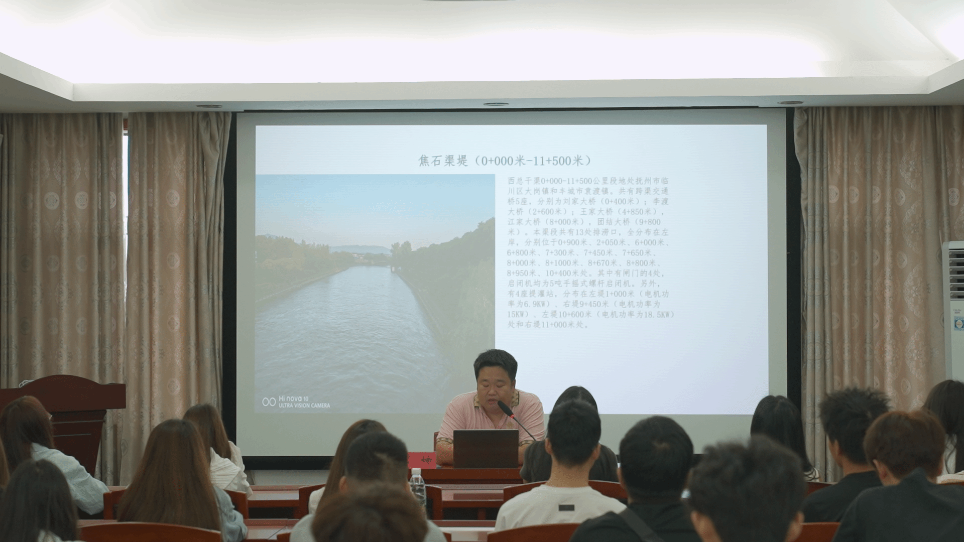 在实践教学过程中,焦石管理站叶强书记、王坤工程师给同学们介绍了焦石大坝的建设历史、内部构建、大坝功能以及运营情况等,并带领大家实地参观大坝,让同学们亲身感受大坝的宏伟壮观,体会水文化的魅力,感悟大坝建设者不怕困难、勇于奋斗的无畏精神。