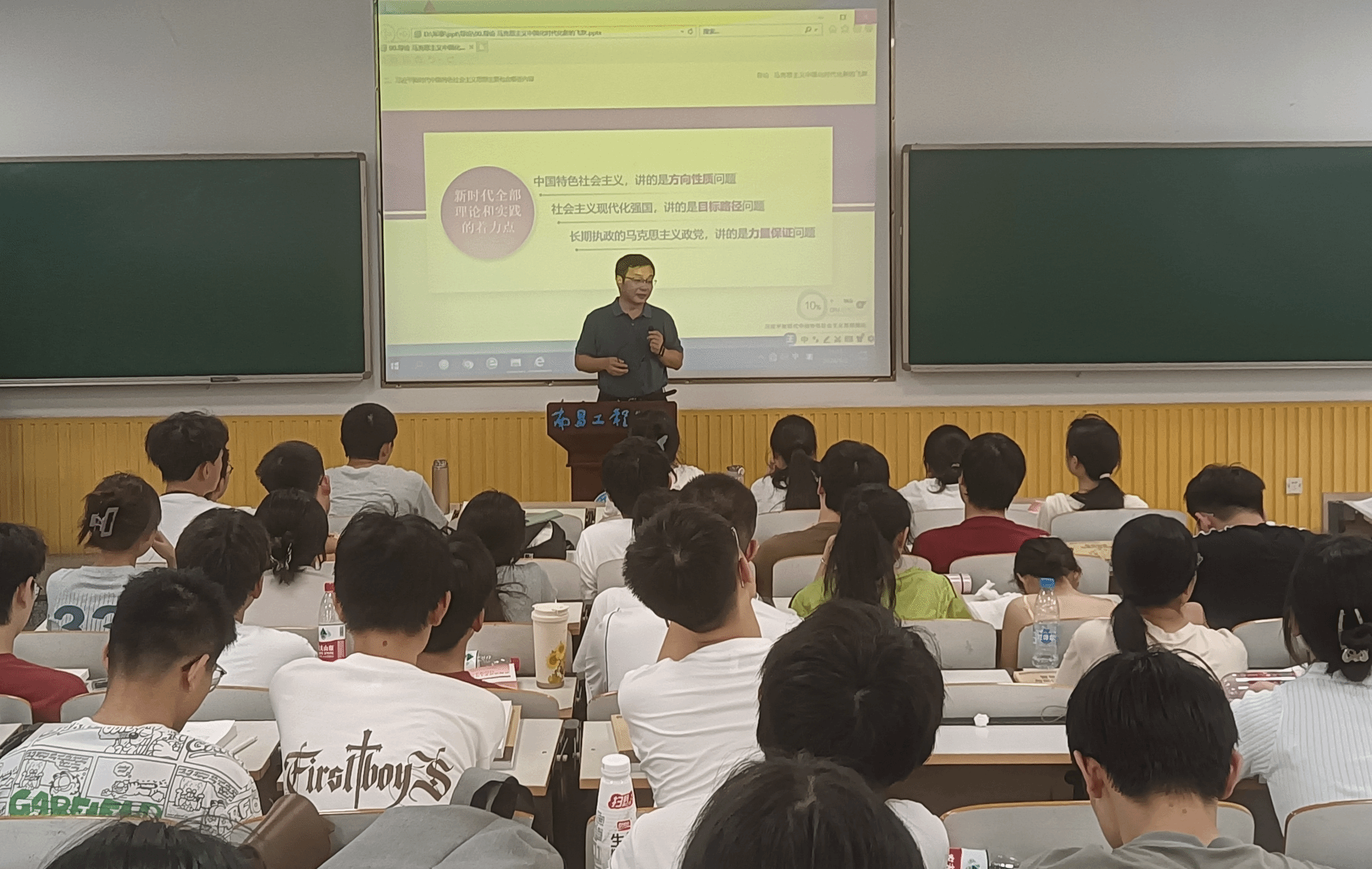 9月2日上午,贺丹君来到南C201,听取了沈薇老师讲授的《习近平新时代中国特色社会主义思想概论》课程,随后为2023级物流管理专业的员工上了一堂生动的思政教育课。贺董事长结合课程教学内容、党的二十大报告和党的二十届三中全会精神,提出伟大时代催生伟大理论、伟大思想引领伟大征程、伟大征程召唤伟大实践,希望同学们认真学好每一门课程、做好每一件小事,立志做“有理想、敢担当、能吃苦、肯奋斗”的时代新人。