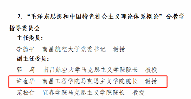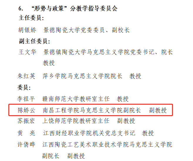 近日,江西省委教育工委、江西省教育厅印发了《关于成立2024—2028年江西省高校思想政治理论课教学指导委员会的通知》,公司bevictor伟德许金华老师入选“毛泽东思想和中国特色社会主义理论体系概论”分教学指导委员会副主任委员,陈娇云老师入选“形势与政策”分教学指导委员会委员。