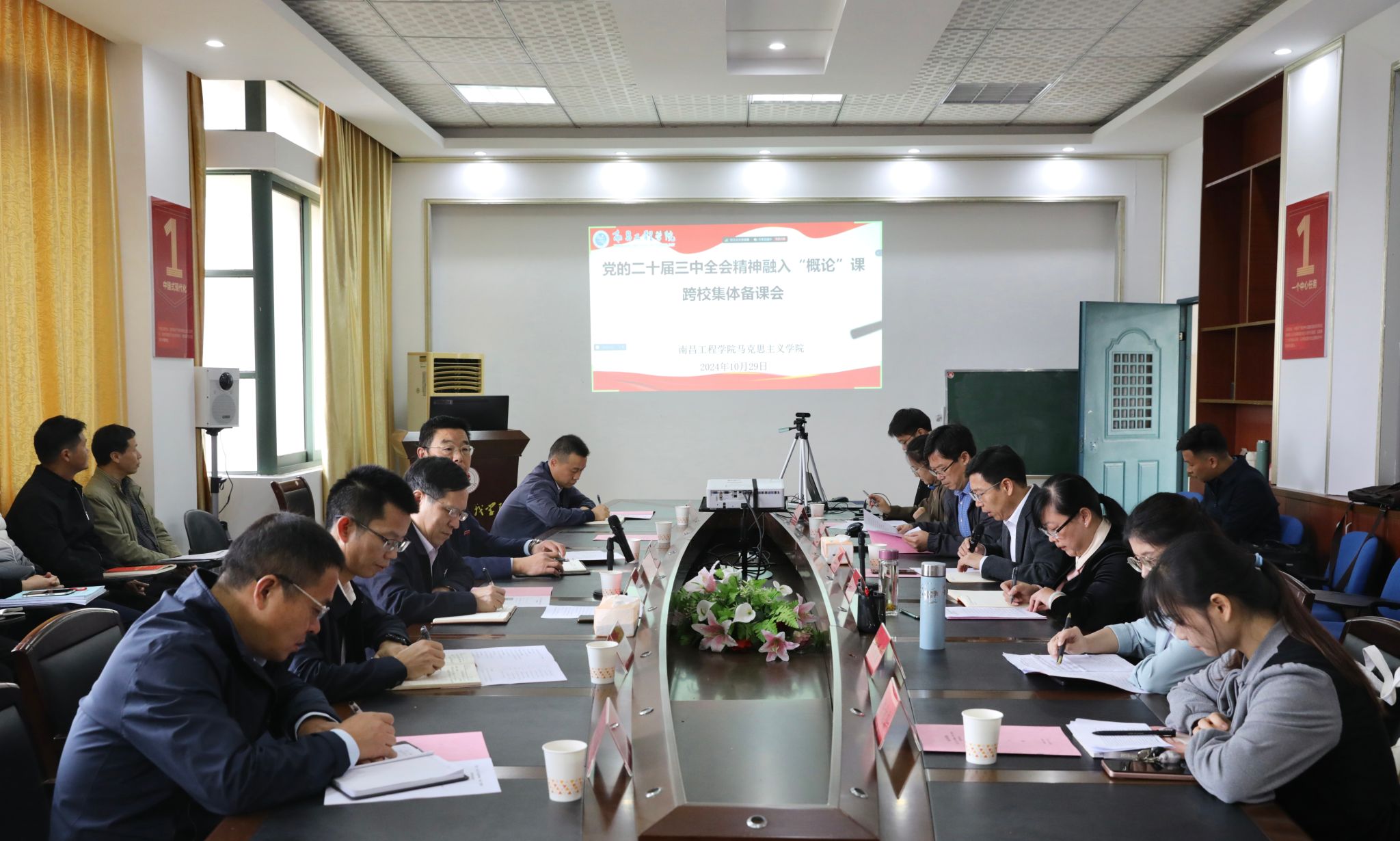 10月29日,党的二十届三中全会精神融入“概论”课教学跨校集体备课会在明理楼(北A410)采取线上+线下相结合的方式举办,深入学习贯彻党的二十届三中全会精神,交流分享党的二十届三中全会精神融入“概论”课教学的心得和经验,高质量推进新时代思政课改革创新。bevictor伟德党委书记汪胜前,副董事长陆伟锋,教务处相关负责人、教育评估监测中心督导员代表,四川大学冯兵教授,江西服装公司、江西工业职业技术公司、江西水利职业公司等大中小学思政课一体化建设共同体单位相关负责人及公司bevictor伟德和各合作单位思政课教师骨干共200余人参加备课会。
