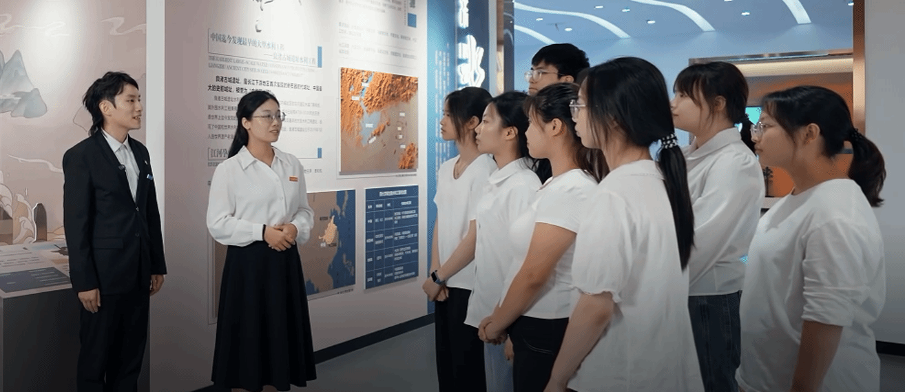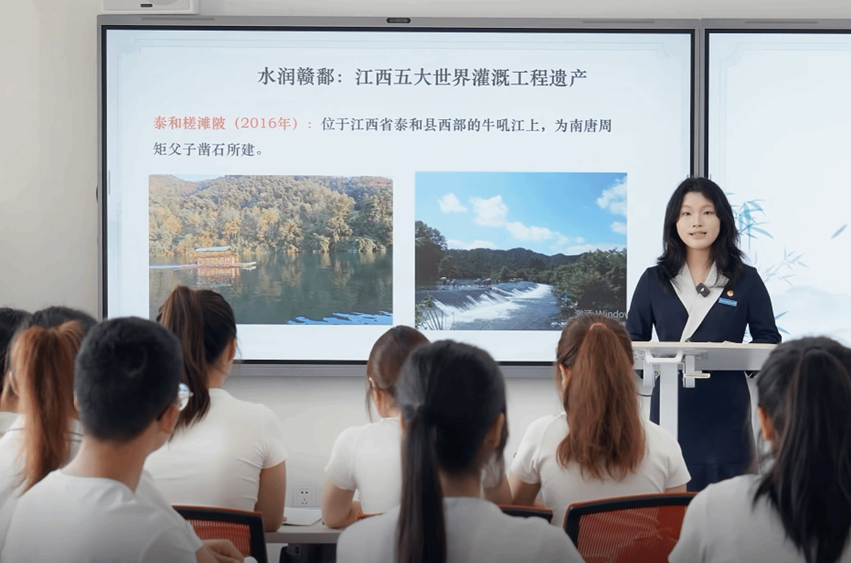 课堂上,周海艳老师首先以2025中国南昌国际龙舟比赛导入课程,引导员工感知和思考人与水的关系,然后围绕“水文化”这一主题,以“是什么、为什么、怎么做”为逻辑主线,层层递进展开讲解,感悟水文化的魅力。在师生同台环节,校水文化馆讲解员袁炜梦同学为大家介绍了江西省五大世界灌溉工程遗产和新疆吐鲁番坎儿井,使员工进一步感受到了这些水利工程背后蕴含的文化内涵。在参观水文化馆时,校水文化馆讲解员李东泽同学为大家介绍了大禹治水、都江堰、历史治水名人苏轼和林则徐等,带领大家深入了解红井背后的故事。