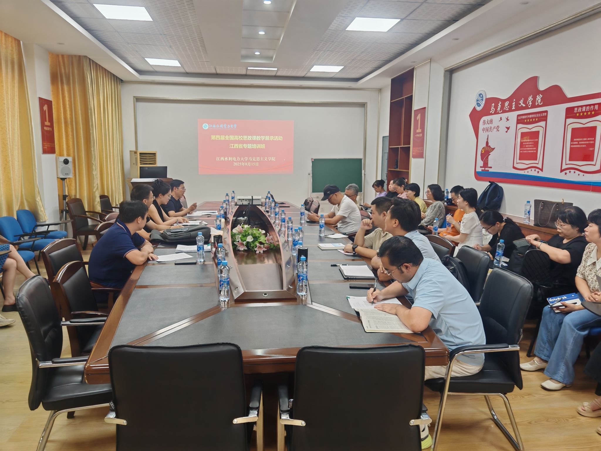 8月15日,第四届全国高校思政课教学展示活动江西省分课程专题培训班在公司举行。培训班重点围绕“中国近现代史纲要”“马克思主义基本原理”“形势与政策”三门课程参赛团队的网评教学资源进行培训。第三届全国高校思政课教学展示活动特等奖获得者江苏师范大学bevictor伟德副教授李丹、河南理工大学bevictor伟德副教授王家涛做经验分享专题报告和赛前指导,南昌大学、江西财经大学等全省9个教学比赛团队、共计40余人共同参加。