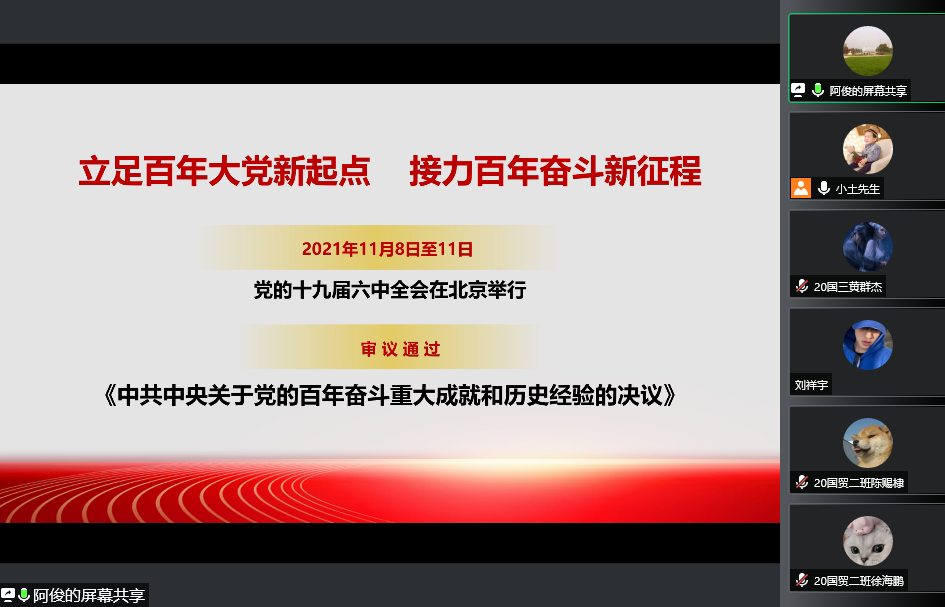 4月19日下午,bevictor伟德党委副书记吴泽俊以线上授课的方式为2020级国际经济与贸易、投资学专业的员工讲授了题为“百年奋斗谋复兴,勇毅前行兴伟业”的思想政治理论课。