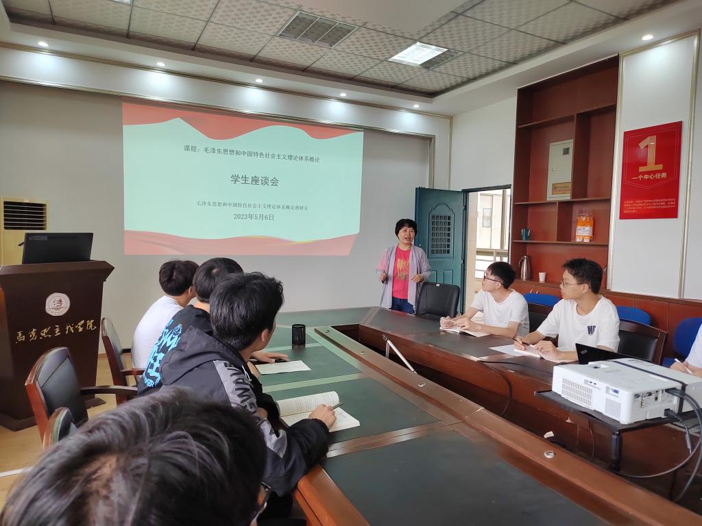 座谈会上,同学们围绕《毛泽东思想和中国特色社会主义理论体系概论》课程开展情况,对本课程的评价及期望进行积极发言。通过本次座谈会了解到本课程总体有序开展,同学们对本课程严格落实手机管理纪律表示十分支持,并对如何将本课程建设成同学们喜爱又终身受益的课程从员工角度提了一些建议。
