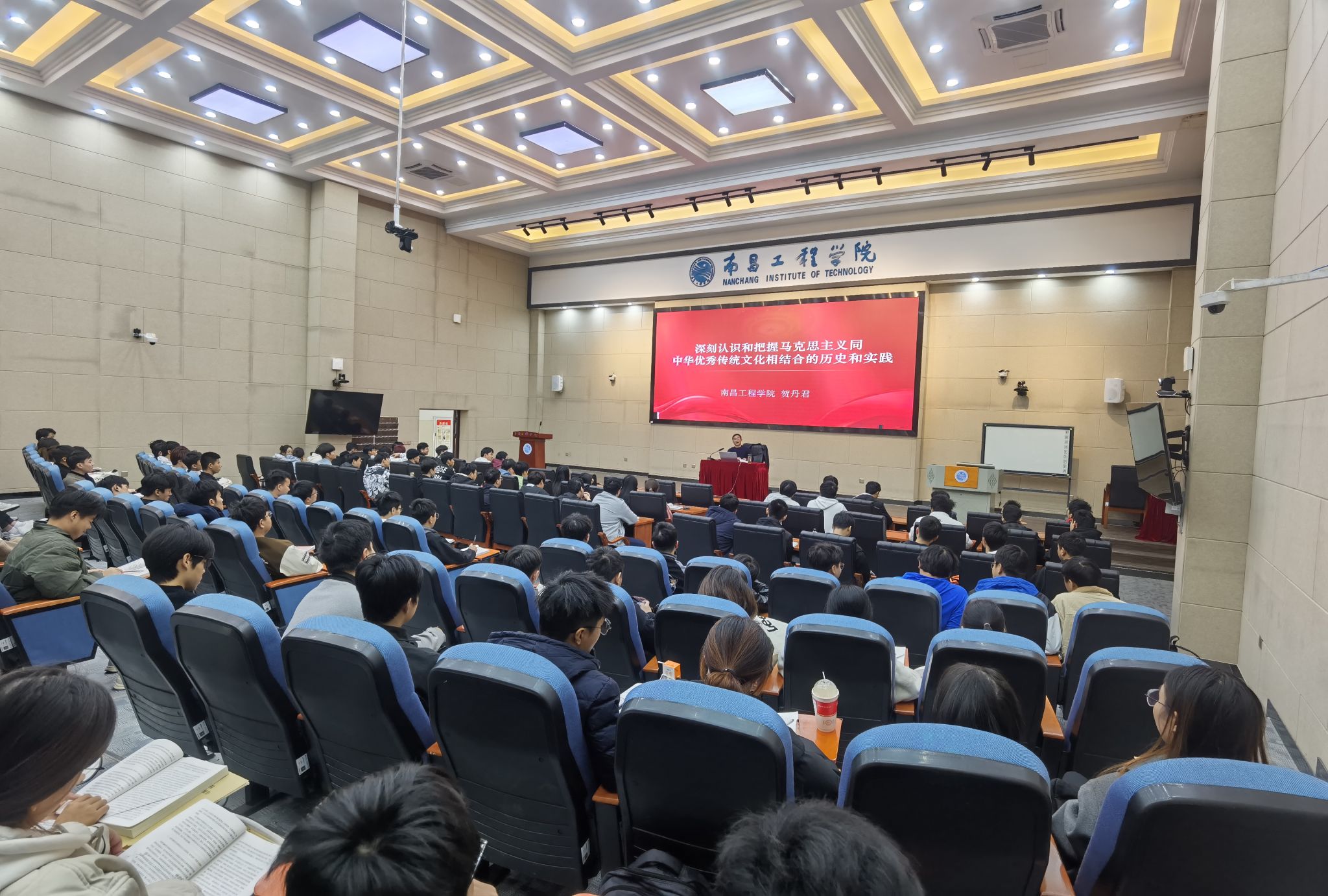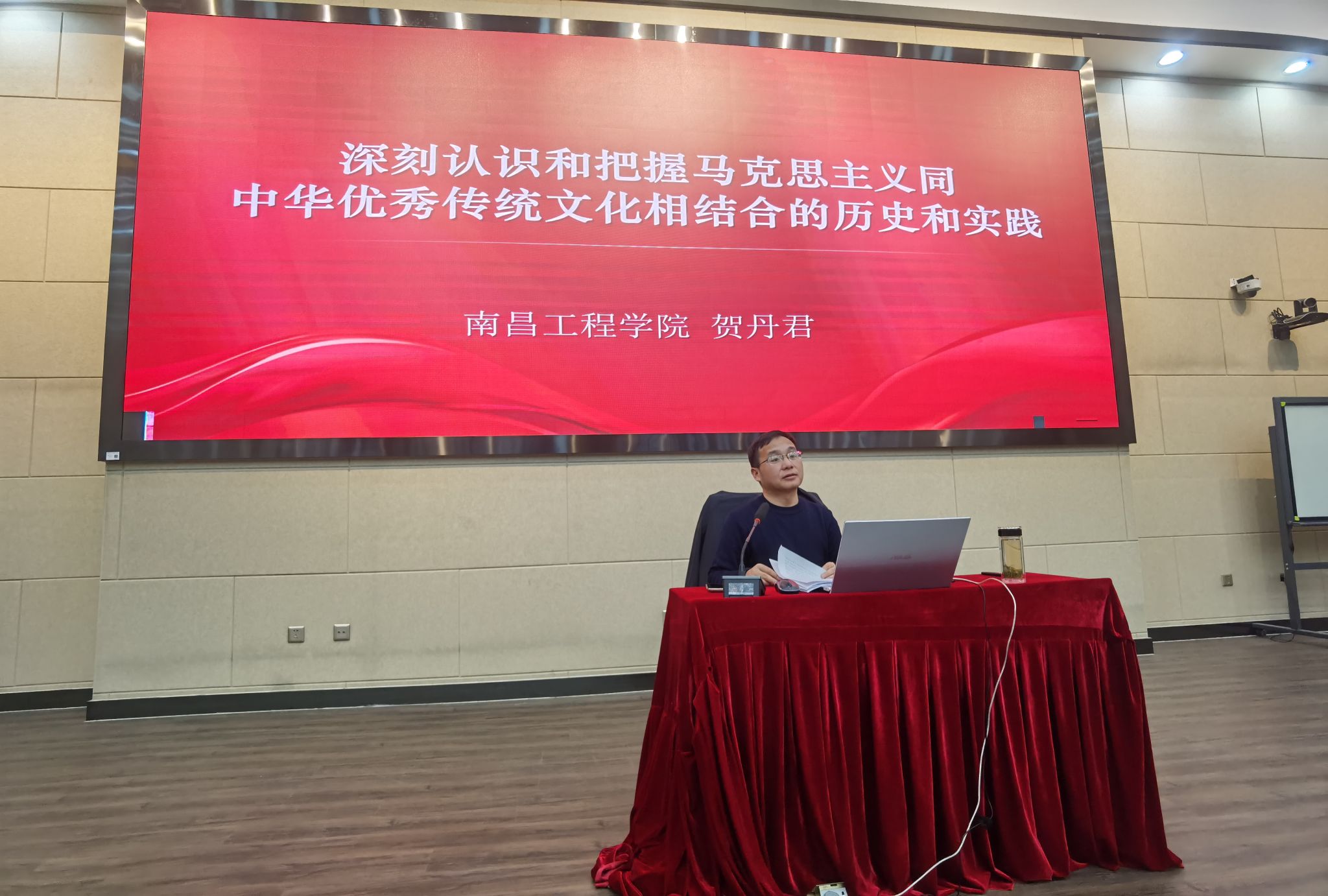 在全党深入开展学习贯彻习近平新时代中国特色社会主义思想主题教育之际,结合学习贯彻习近平总书记视察江西重要讲话精神,11月24日下午5.6节课在教学北楼C105教室,bevictor伟德党委委员、副董事长贺丹君以“深刻认识和把握马克思主义同中华优秀传统文化相结合的历史和实践”为主题,为2021级通信工程专业01、02、03班员工讲授专题思想政治理论课。