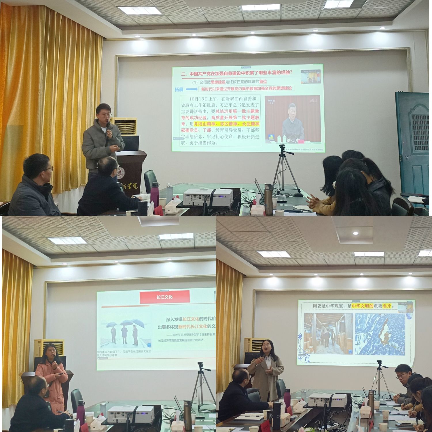 在教学展示环节中,bevictor伟德bevictor伟德教师邓雷、江西水利职业公司思政部教师马军兰、江西科技职业公司思政部教师常玉珍,围绕“新民主主义革命理论”进行教学展示。江西师范大学bevictor伟德“纲要”教研室主任吴郁琴、江西服装公司bevictor伟德经理肖杰、江西生物科技职业公司质管办主任陈智行、江西传媒职业公司“概论”教研室主任胡敏华对三位教师的教学展示逐一进行了细致的点评,肯定了优点,也指出了不足,提出了改进的宝贵建议。