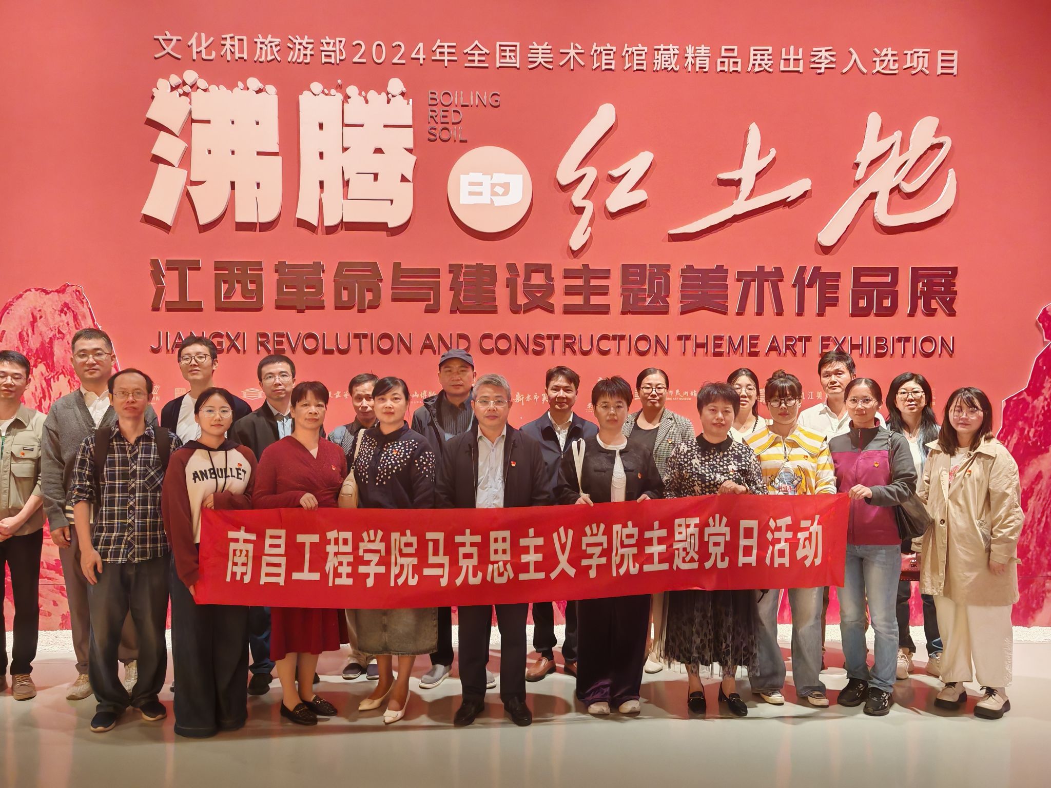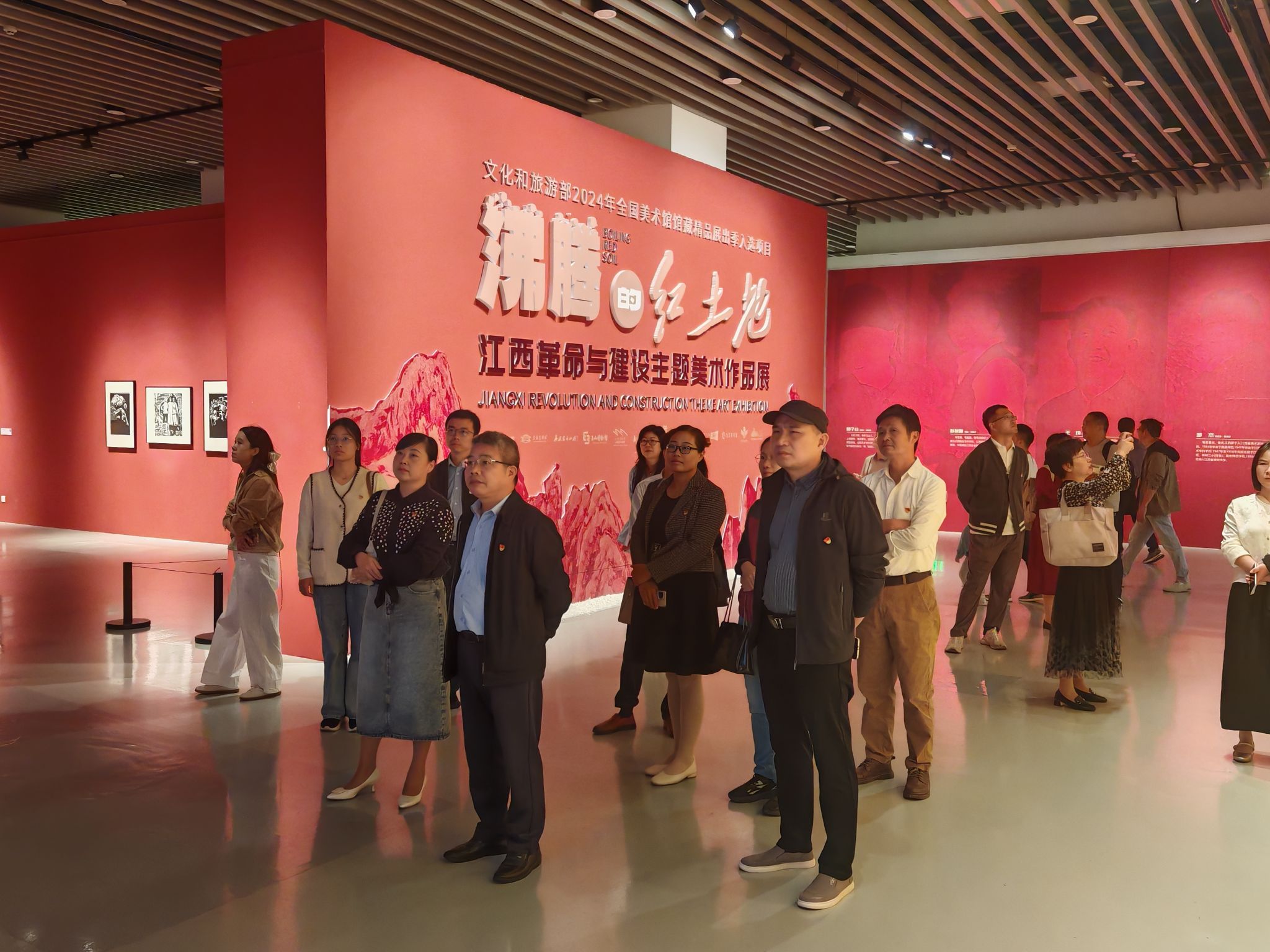 在江西省美术馆,大家一同参观了正在展出的“沸腾的红土地——江西革命与建设主题美术作品展”。此展览汇集了江西省内十三家美术馆的馆藏精品,通过“日月换新天”“旧貌换新颜”“今朝更好看”三个篇章,充分展现红土地上江西人民在不同历史阶段艰苦奋斗、勇于创新的面貌。