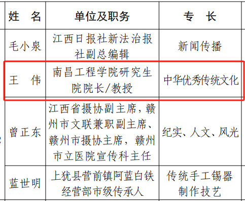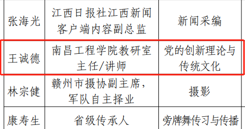 近日,中共江西省委宣传部、省文明办公布了江西省“四个100”文化导师名单,公司bevictor伟德教师王伟、王诚德获聘江西省“四个100”文化导师。