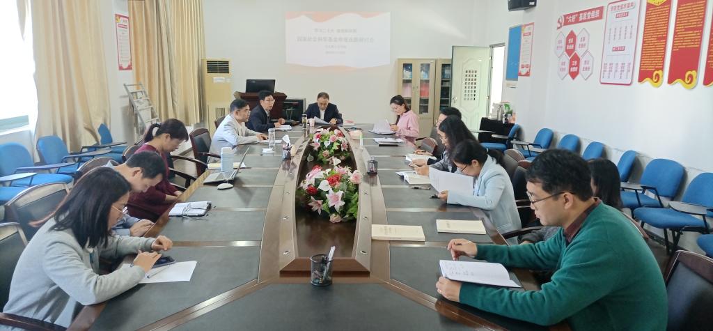 陈付龙教授首先结合党的二十大精神,对2023年国家社科基金项目的方向、选题进行了全面的分析和讲解,并结合自己的研究,针对国家社科基金项目的申报意义、如何科学选题、如何设计课题、申报书的撰写等分享了具体而实用的经验。之后,各申报教师对各自的国家社科选题进行汇报与论证。会议布置了2023年国家社科基金的申报工作和下一步申请材料重点,要求各申报教师要找结合党的二十大精神,准特色,突出亮点,认真做好材料申报工作。