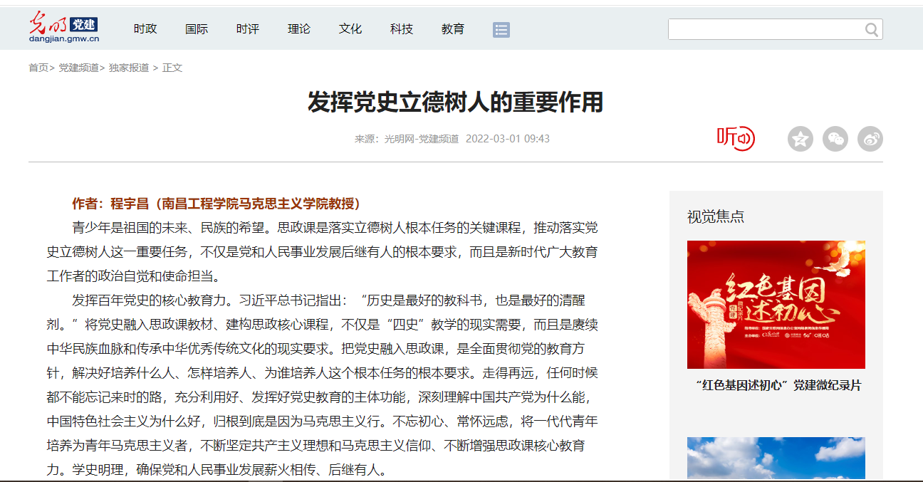 近日,公司bevictor伟德程宇昌教授在光明网刊发理论文章《发挥党史立德树人的重要作用》。