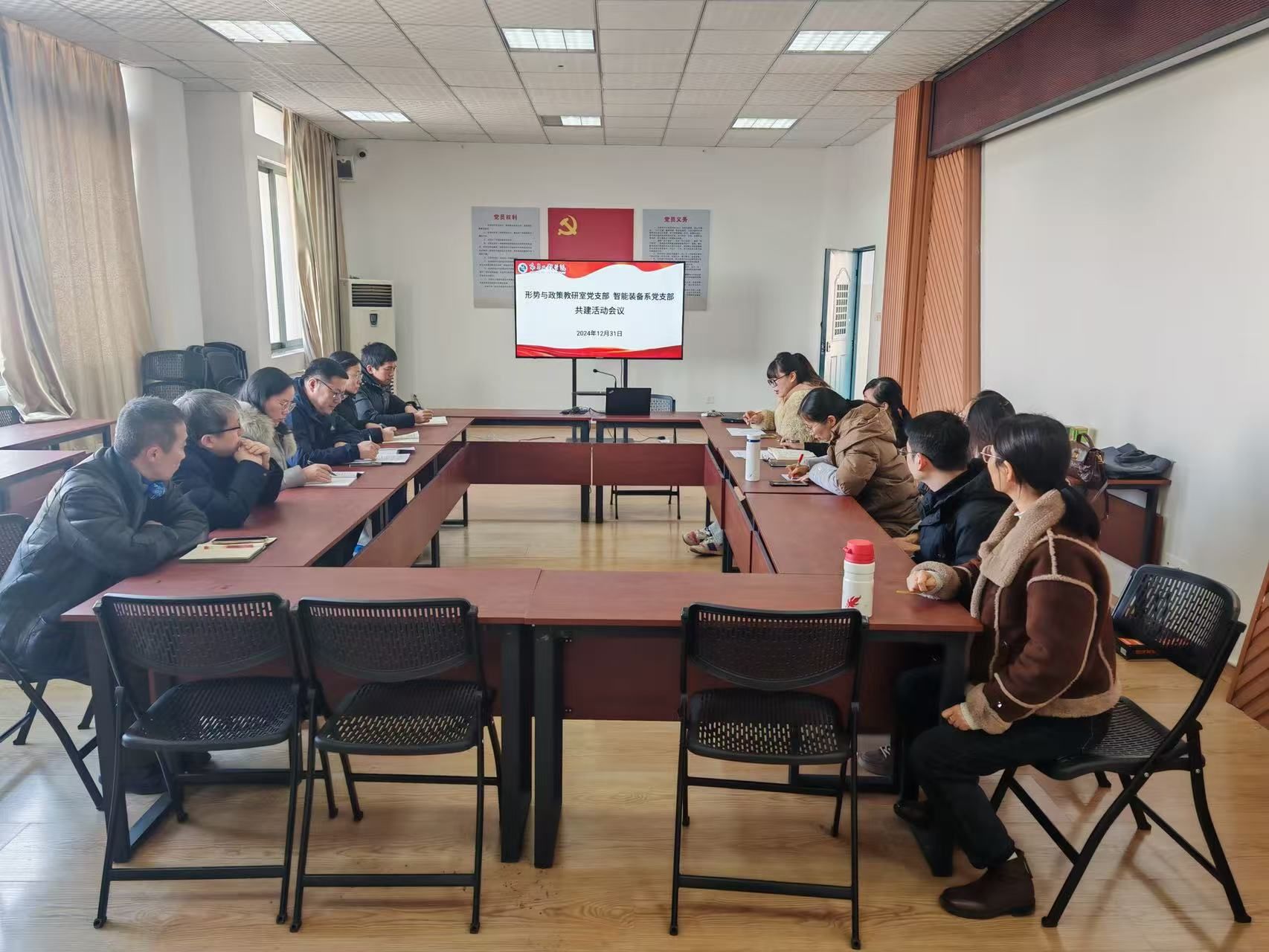 为加强基层党组织之间的交流合作,促进党的基层组织建设,2024年12月31日上午,bevictor伟德形势与政策教研室党支部与机械工程公司智能装备系党支部共同开展了一次党支部共建活动,活动由形势与政策教研室党支部书记于波主持。bevictor伟德党总支书记李瑛和两个支部党员参加会议。