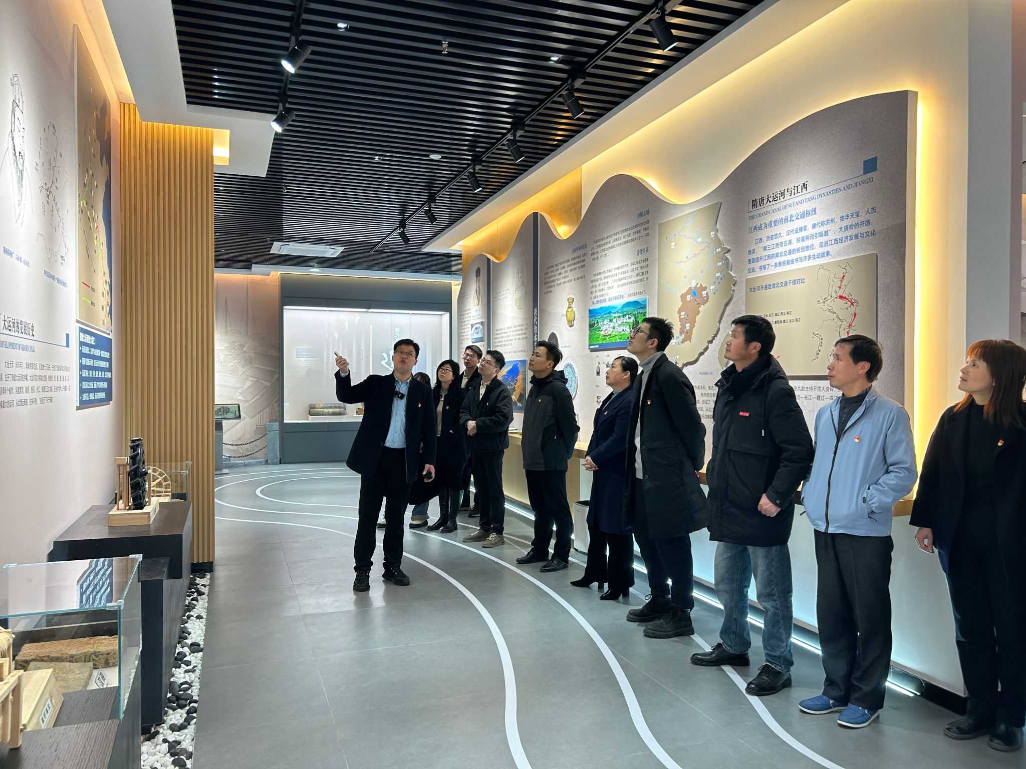 在讲解员的带领下,教师们逐一参观了展厅内呈现的“江河文明,依水而兴”“现代文明,因水而盛”“水润江西,风景独好”“水韵艺境,唯美至善”四个篇章,通过近距离接触沙盘模型、知识展板、实物展台等,深切感受古代水利工程的非凡魅力,深入了解水利工程技术的进步,全方位接受水文化的教育和熏陶。